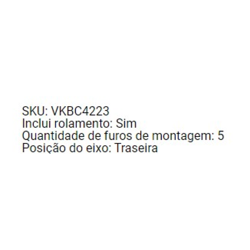 Ficha técnicaDescrição da peçaCUBO RODA TRASMarcaSKF SKU036399Código FabricanteVKBC4223 Código de barras7897850363996 Códigos de referência 8068 Nivus 1.0 2020/polo 1.0/1.4 tsi 1.6 msi 2018/tcross 1.0/1.4 tsi 2019/virtus 1.0/1.4 tsi 1.6 msi 2018/al2072qb5016112qb501611a20qb501611b ..